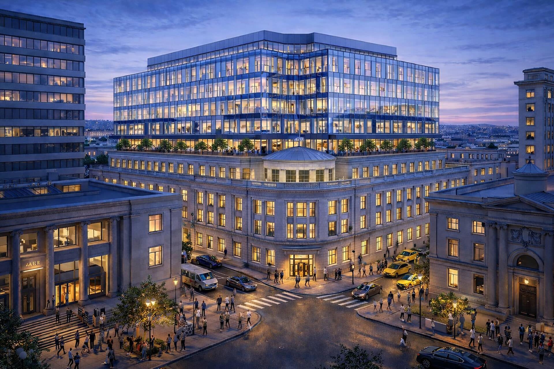 Design updates are expected to improve the building’s presence at street level, helping the property better connect with surrounding blocks and contribute to a more active downtown streetscape.