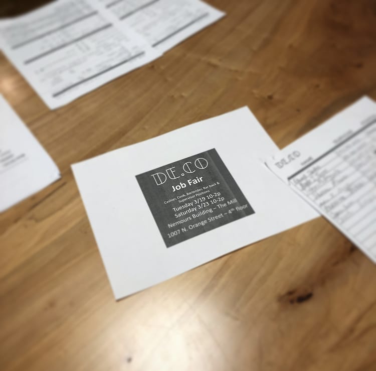 Managers Imian Partners bring their hospitality expertise to bear, channeling the runaway success of the nearby Constitution Yards Beer Garden as they make DECO a centerpiece of downtown Wilmington’s resurgent restaurant scene. In preparation for staffing DECO’s full-service food hall operation, two job fairs were held at The Mill Coworking Space located on the fourth floor of DECO’s sister building, The Nemours Building. With opportunities for everyone to fill there was a healthy turnout for 100 open positions in both the front and back of the house.