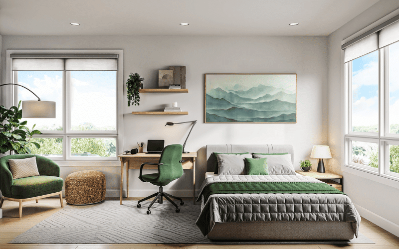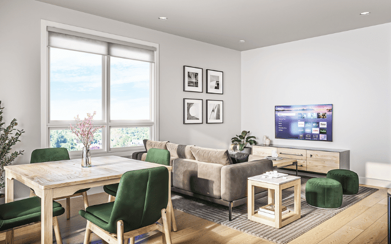 Community amenities include dedicated study lounges, a game room, a 24/7 fitness center, and onsite parking. In-unit features such as stainless-steel appliances, in-unit laundry, and quartz countertops provide added convenience, making Main & Haines a functional and comfortable residential option for UD students seeking a walkable, off-campus living experience.